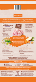 Sudėtis: Iškaulinta kalakutų mėsa * (16%), džiovinti vištienos baltymai (15%), džiovinti žirneliai * (15%), avižos* (12%), rudieji ryžiai* (7%), viso grūdo miežiai *, kukurūzų baltymai, paukštienos riebalai* (6%), hidrolizuoti gyvūniniai baltymai (paukštiena, kiauliena, žuvis) (4%), runkelių minkštimas*, mineralai, džiovintos morkos* (0,5% atitinka 4% šviežių morkų), džiovinti obuoliai (0,3% atitinka 2% šviežių obuolių), džiovinti dumbliai (rudadumbliai)* (0,01%), džiovintas rozmarinas* (0,01%). *Natūralūs ingredientai.
