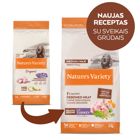 NATURE'S VARIETY Healthy Grain Med/Max Adult Dog (kalakutiena) 12 kg